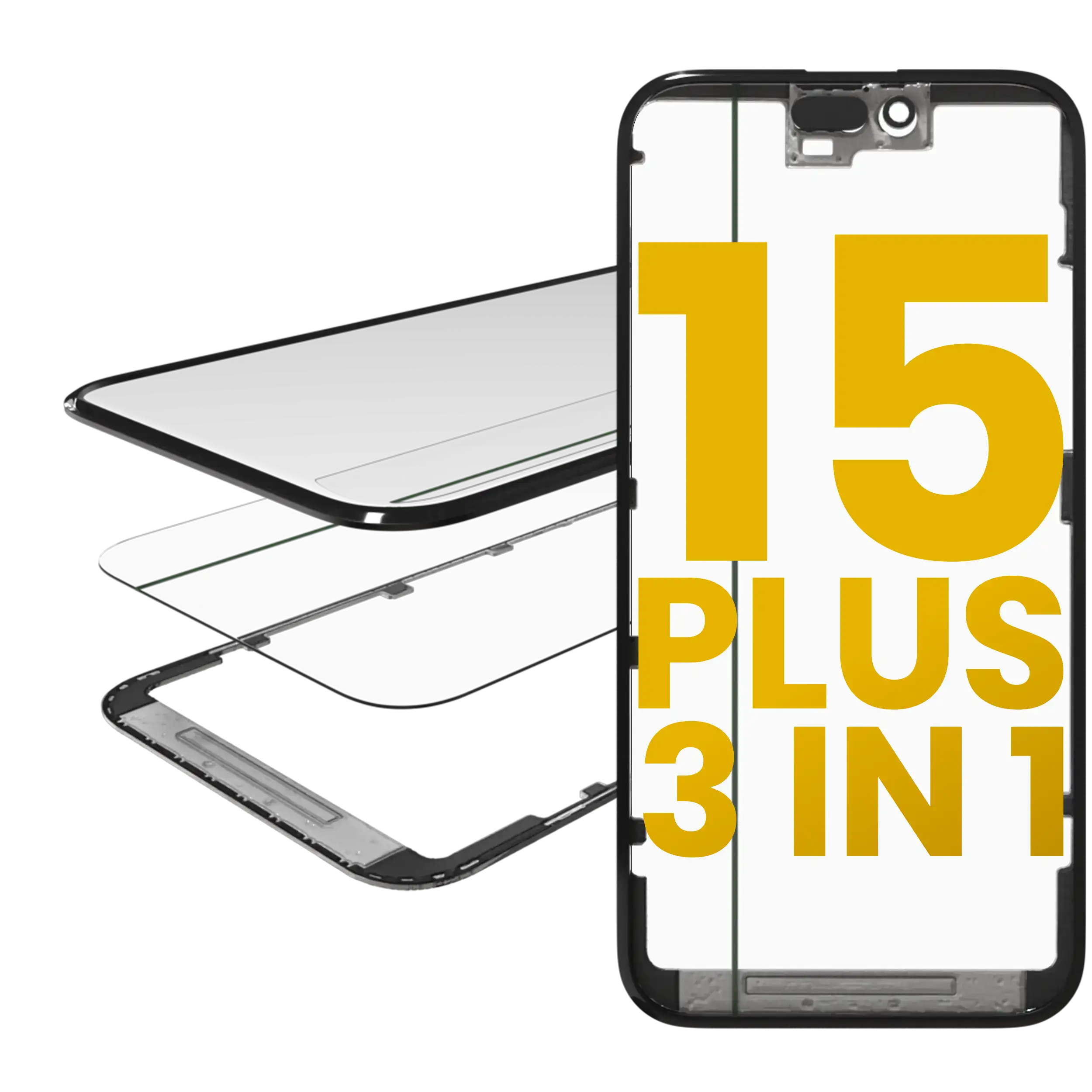 3 in 1 (Glass With OCA Pre-Installed + Frame) For iPhone 15 Plus (OCA Master)