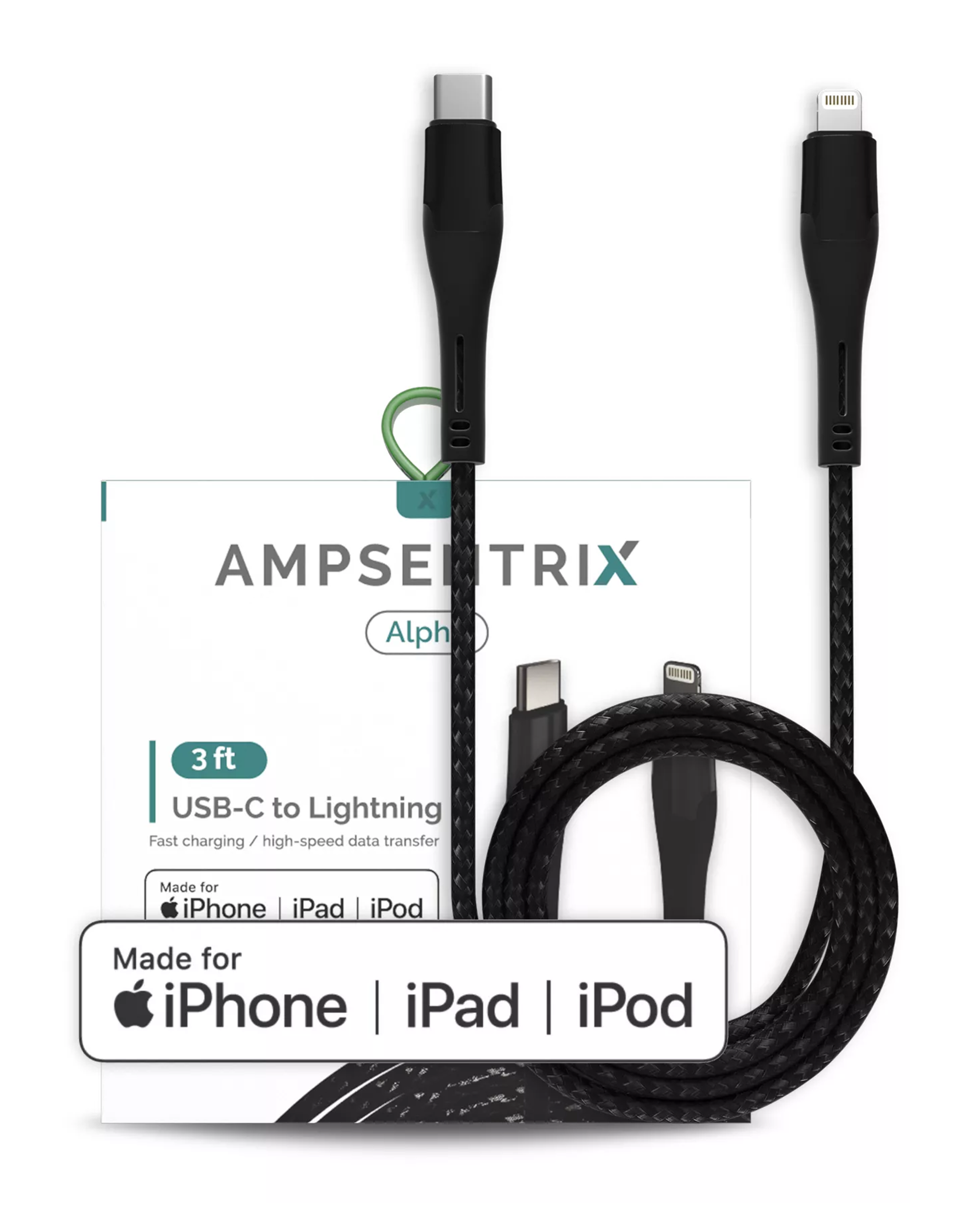 • Affordable AMPsentrix 3 ft MFI Lightning To USB Type C Cable (Alpha) (Black).