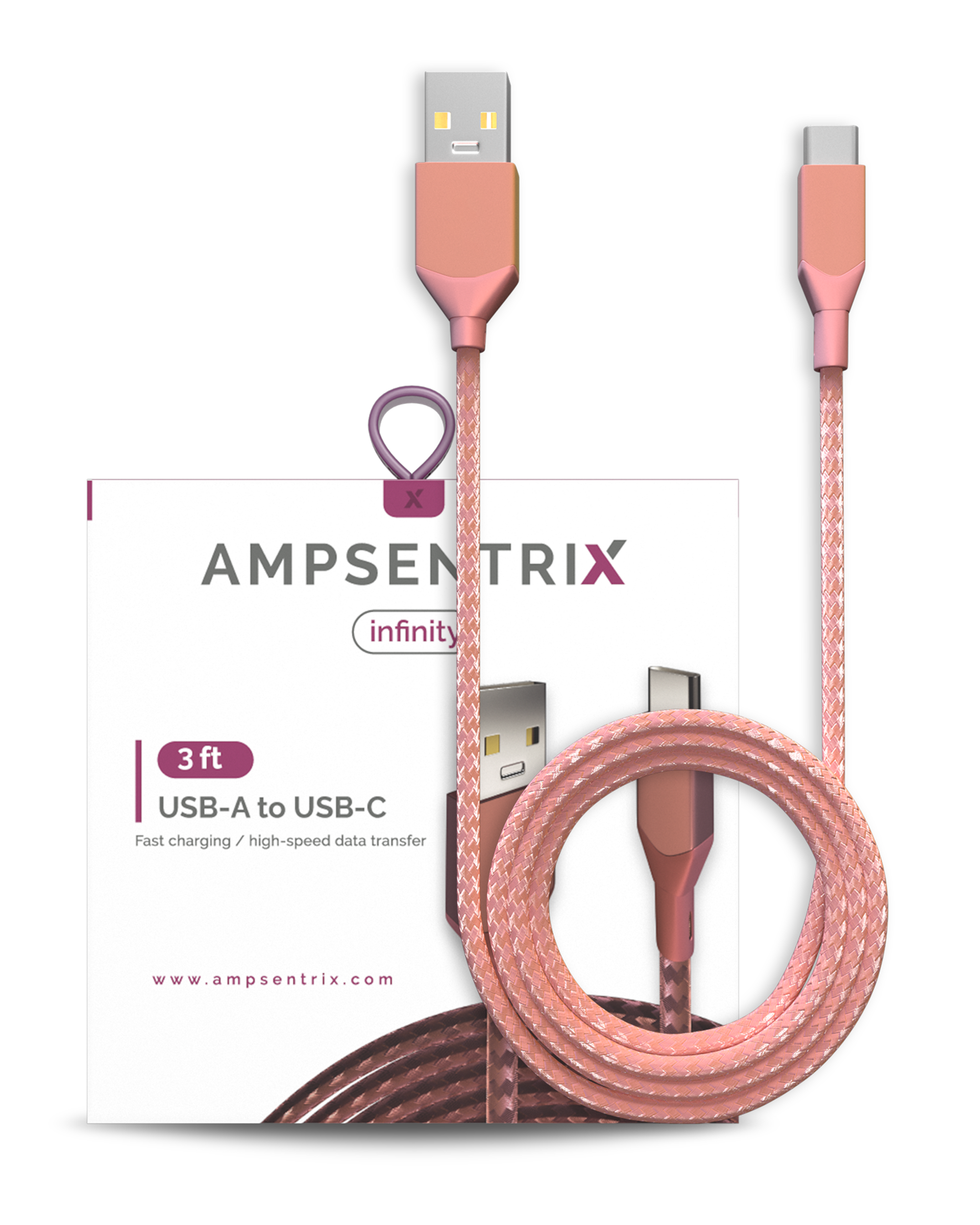 • Affordable AMPsentrix 3 ft USB Type C To USB Type A Cable (Infinity) (Pink).