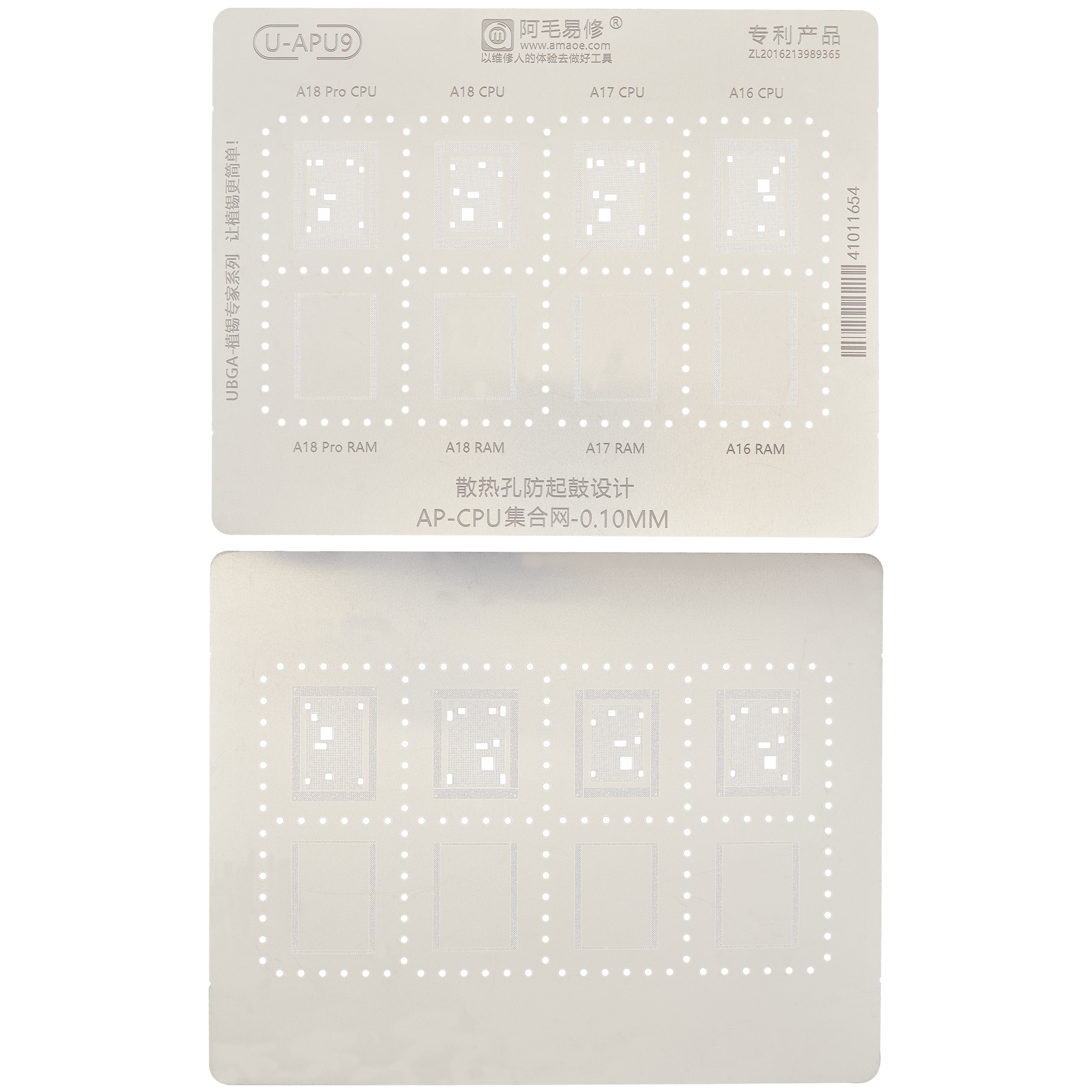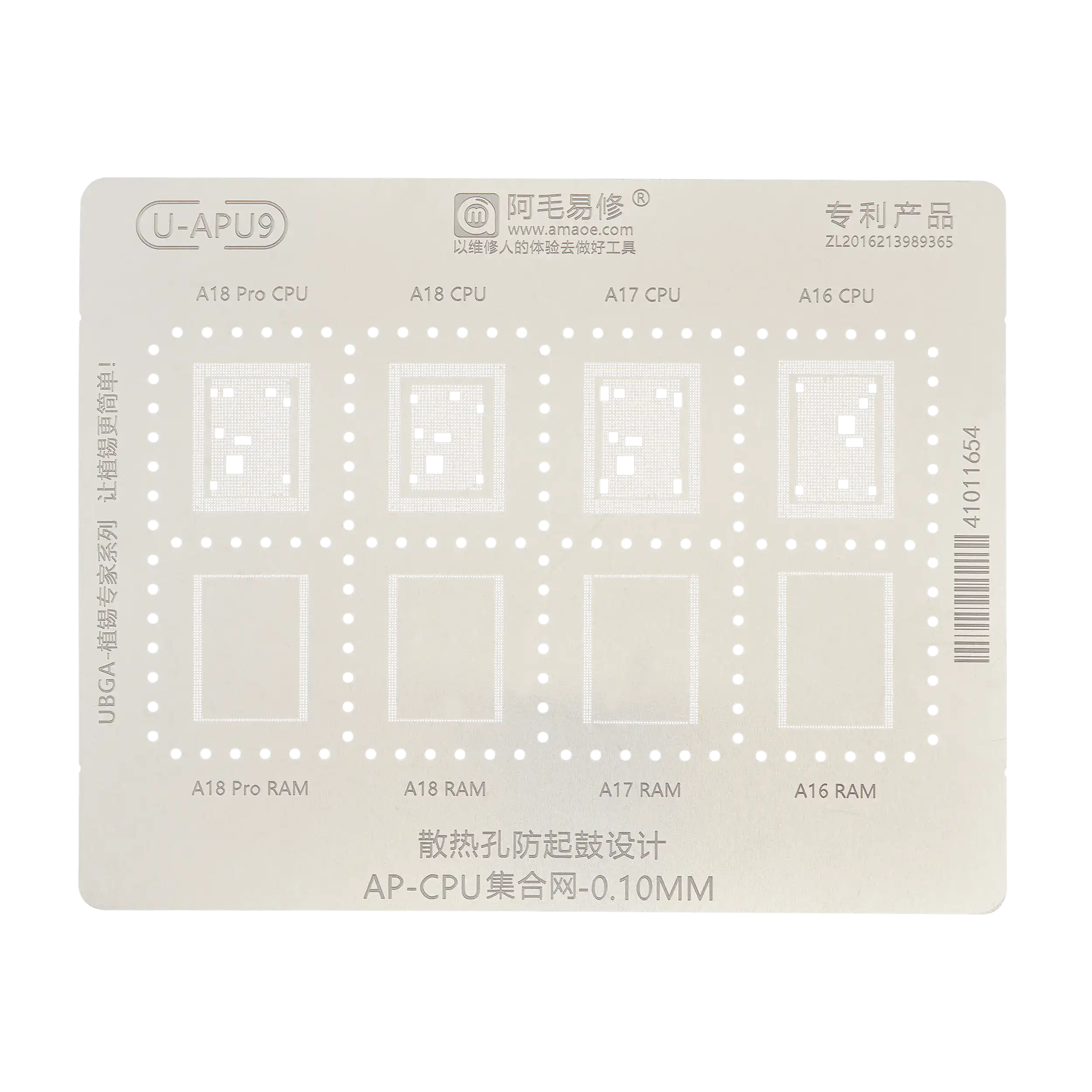 U-IP11 0.12MM A16/A17 Universal CPU Rework Repair BGA Reballing Stencil for iPhone 15 Series (Amaoe) (V3.0)