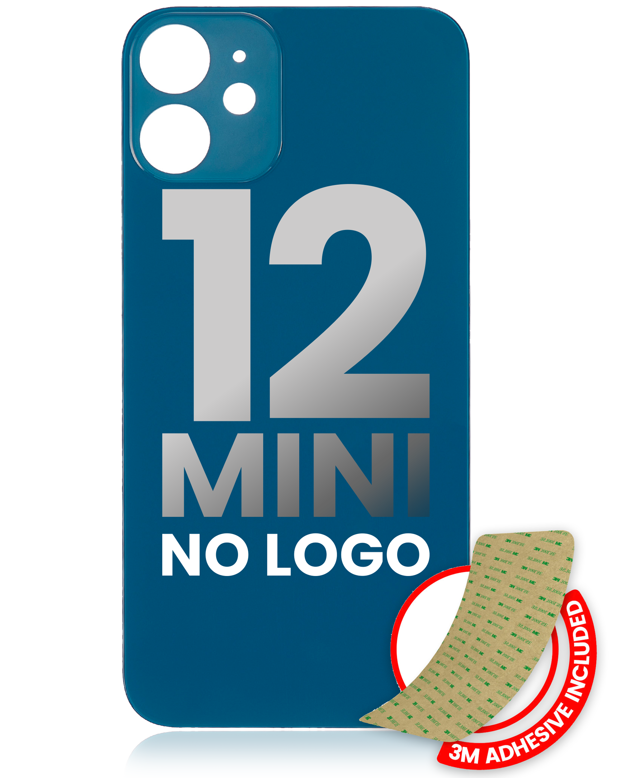 • High quality, Back Glass with 3M adhesive for iPhone 12 Mini (No Logo / Large Camera Hole) (Blue).