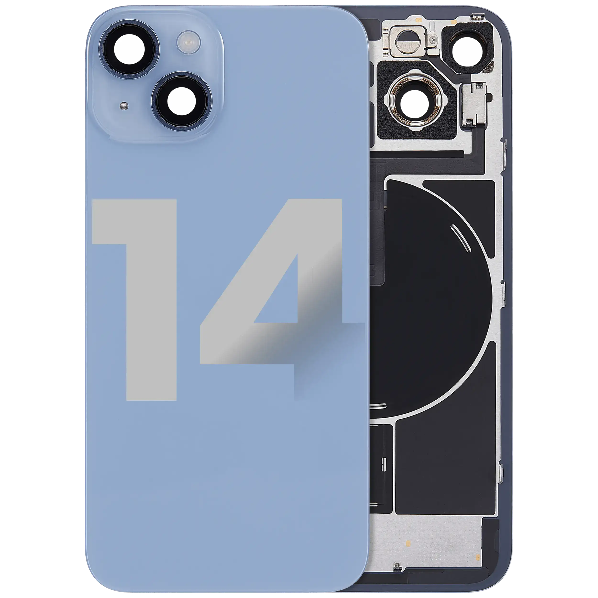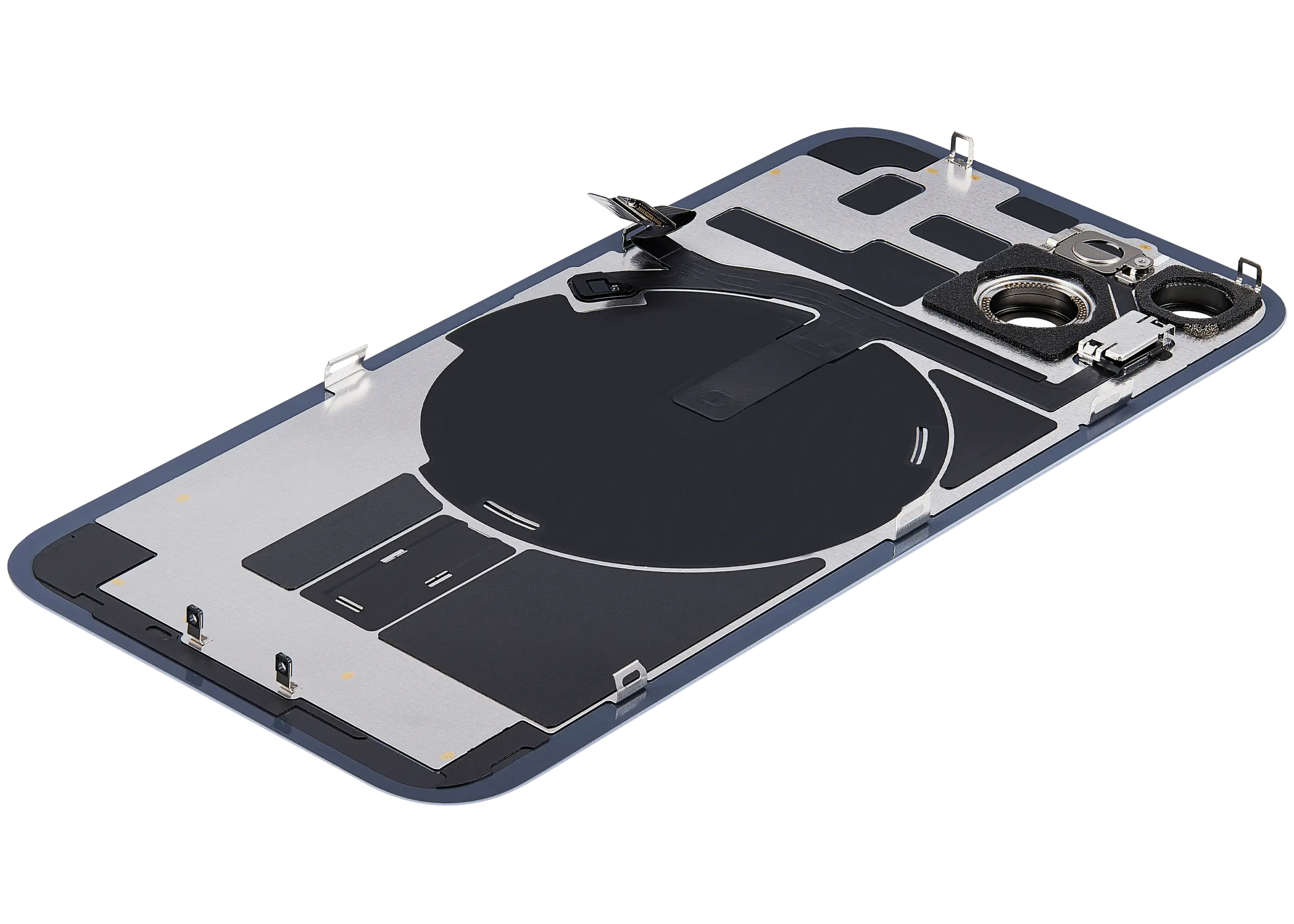 Back Glass With Steel Plate With Wireless NFC Charging MagSafe Magnet & Flashlight Flex iPhone 14 (Used OEM Pull: Grade B) (Blue)