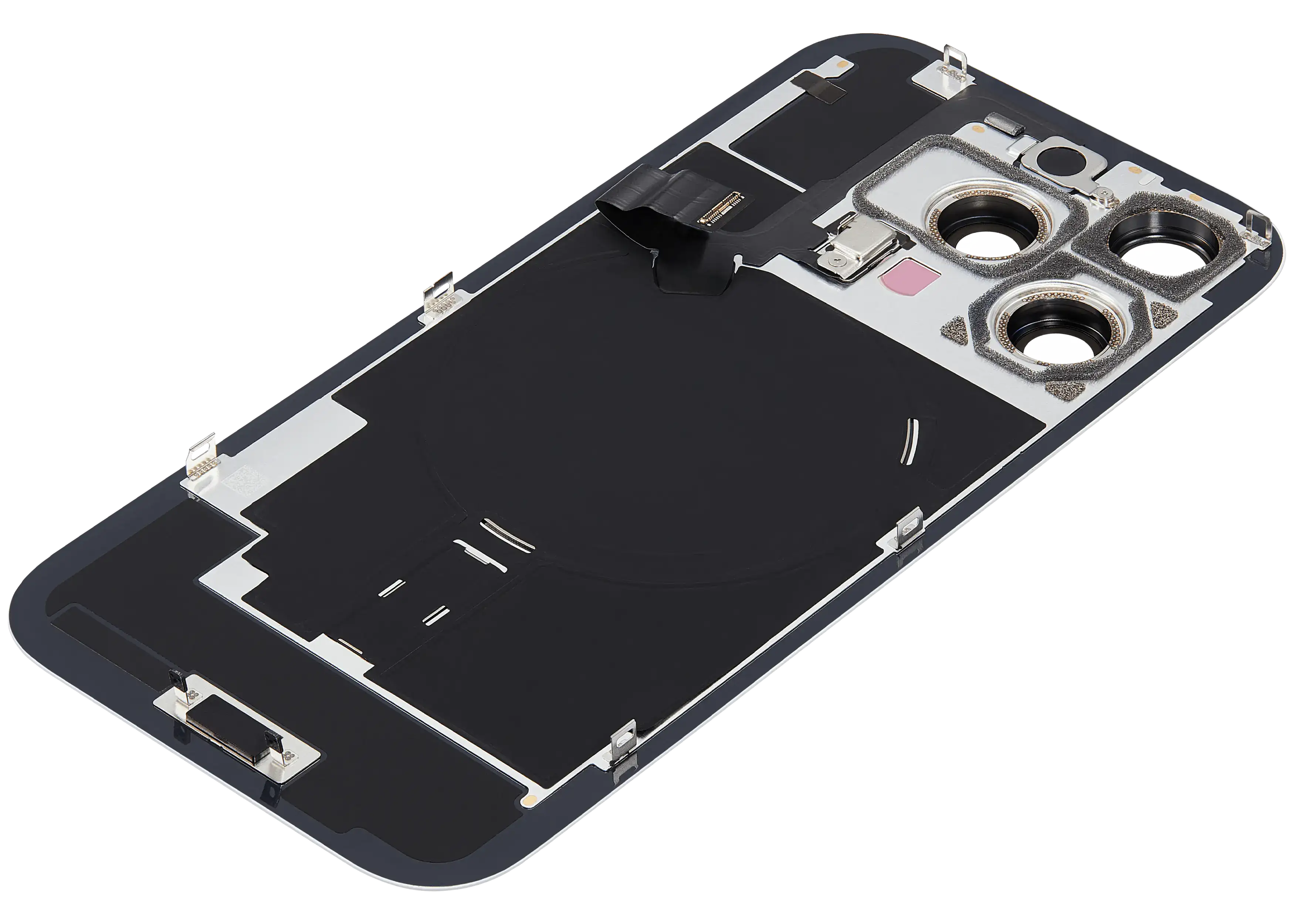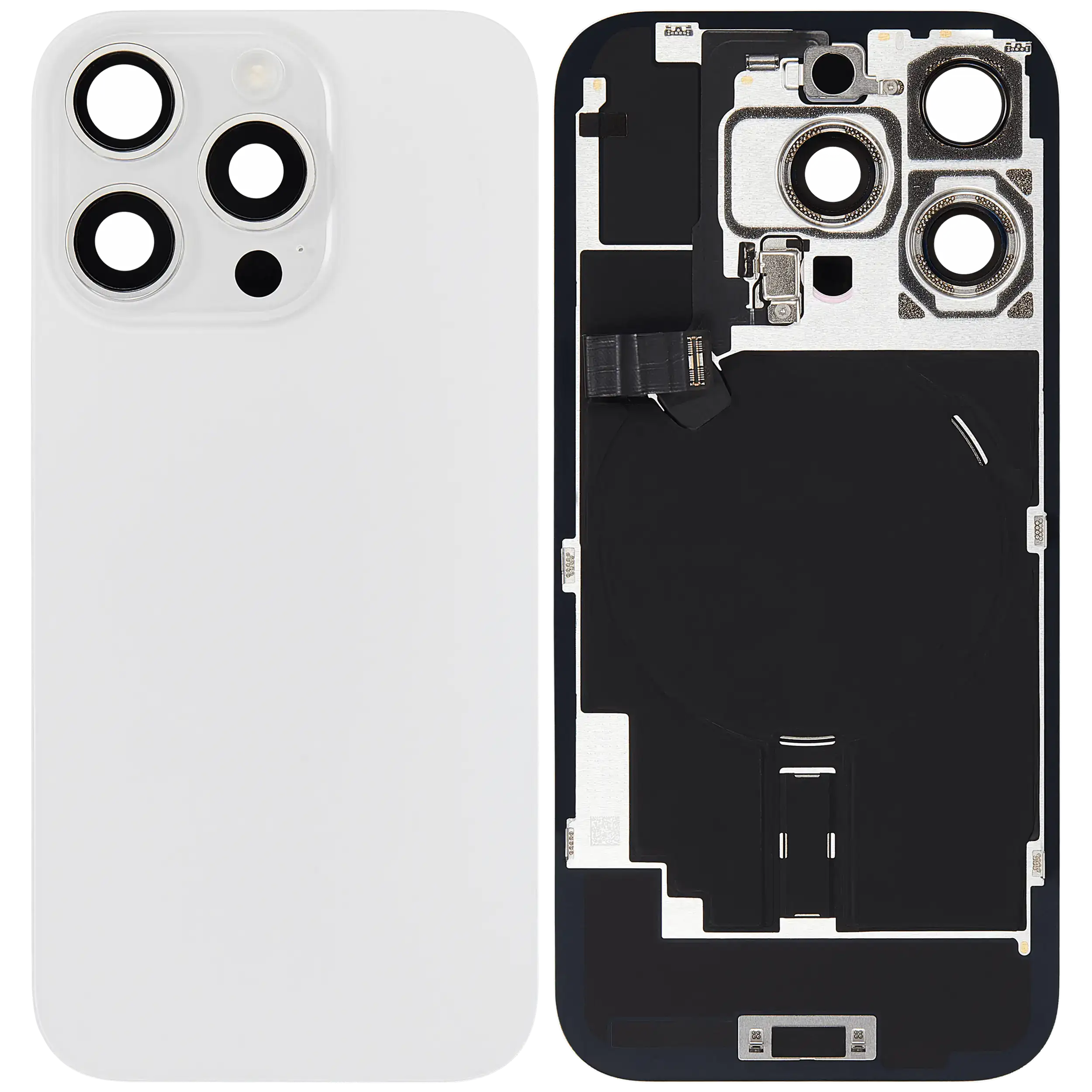 Back Glass With Steel Plate With Wireless NFC Charging MagSafe Magnet & Flashlight Flex iPhone 16 Pro (Used OEM Pull: Grade B) (White Titanium)