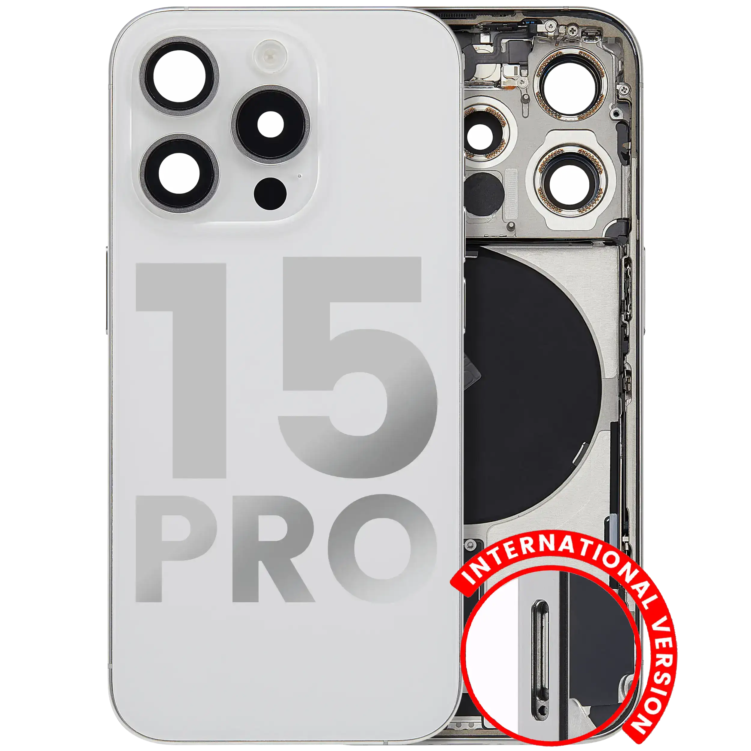 Mid-Frame Housing W/ Small Parts For iPhone 15 Pro (US Version) (Used OEM Pull: Grade A) (White Titanium)