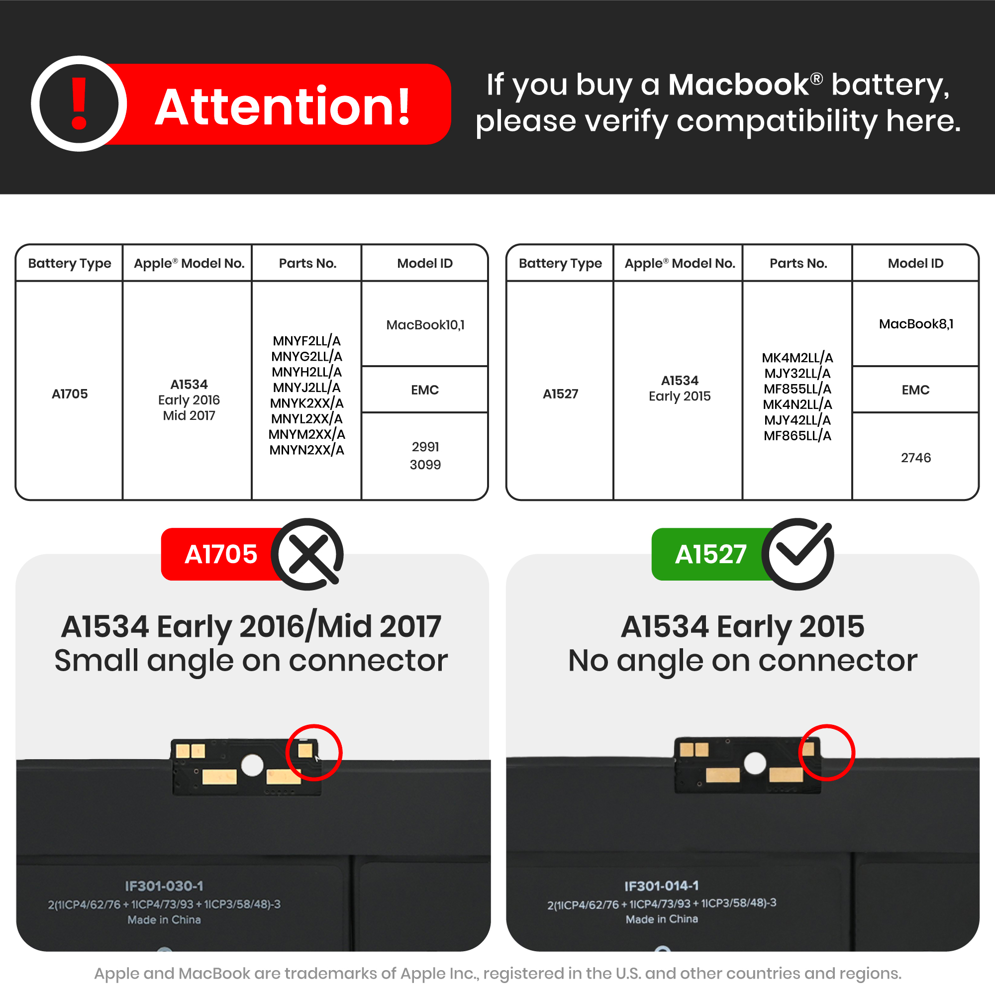 Battery (A1705) For MacBook 12" A1534 (2016-2017)When purchasing a Genuine Apple Part, you agree to participate in the Core Return Program. This program requires you to return the broken or faulty part within 60 days of purchase. Failure to return the core on time will result in a fee of .To better understand the Core Return process, watch our quick video tutorial here: Learn How Core Returns Work.