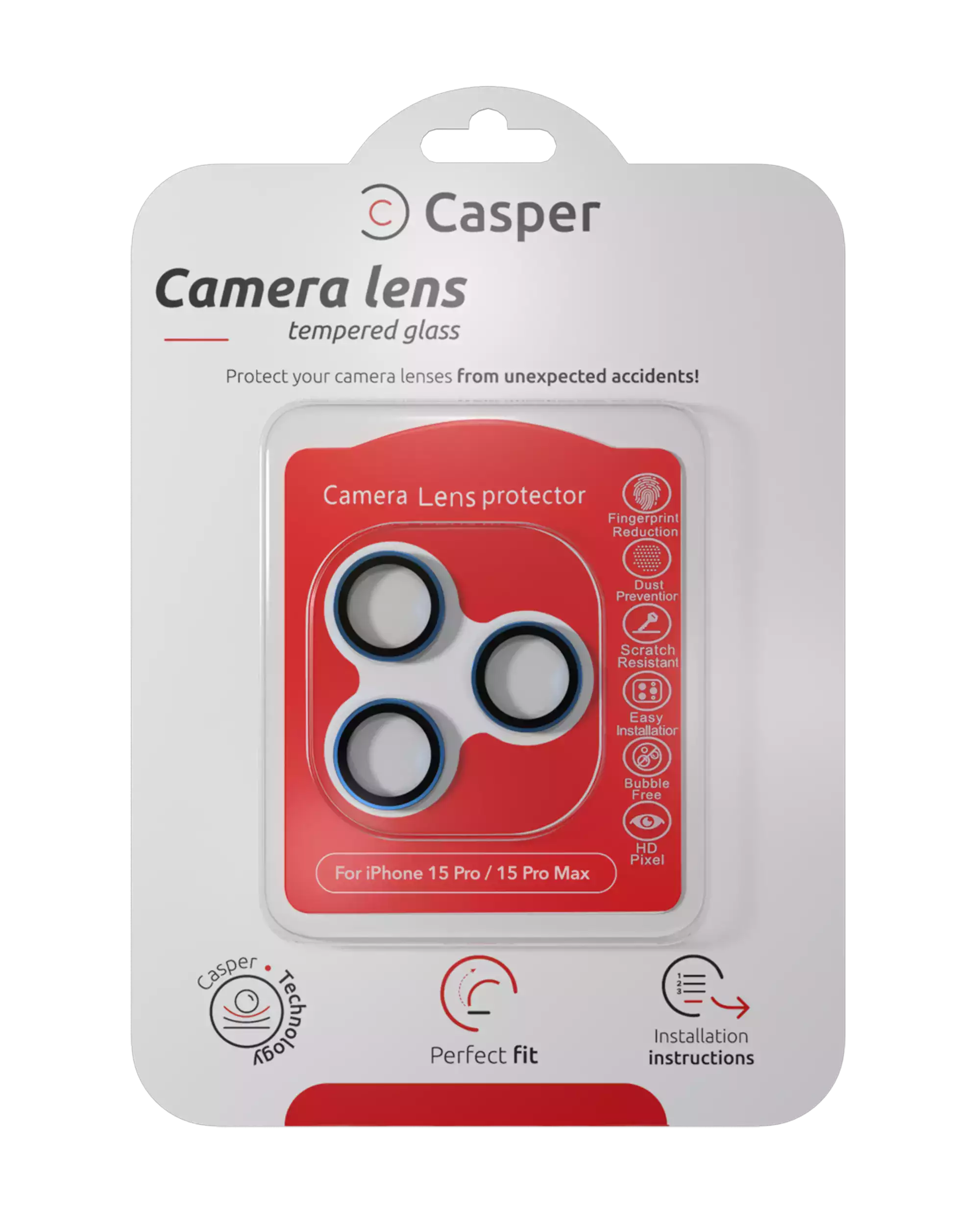Casper Camera Lens Protector For iPhone 15 Pro / 15 Pro Max (Crystal Full Cover)