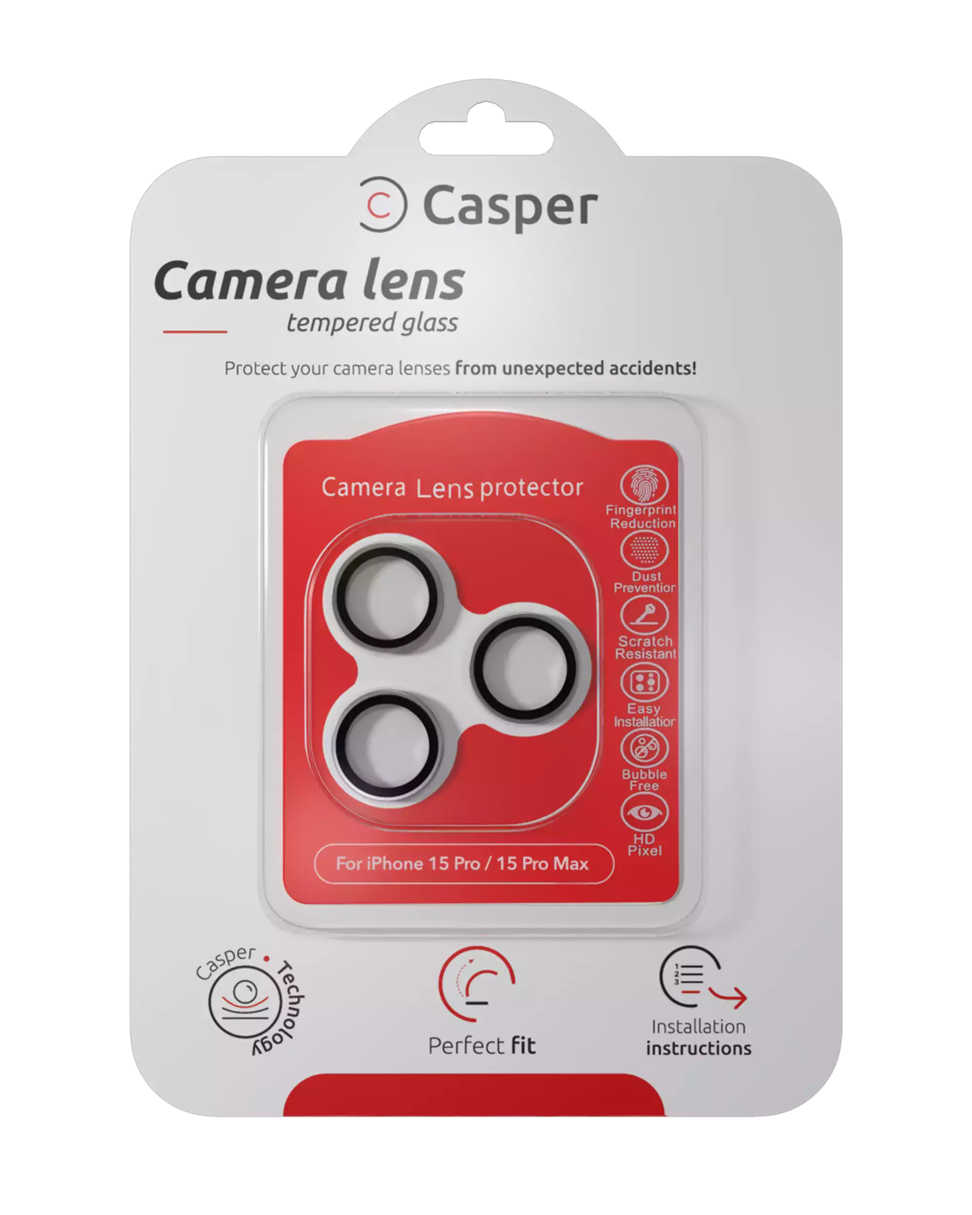 Casper Camera Lens Protector Compatible For iPhone 15 Pro / 15 Pro Max (Silver) (Clear)