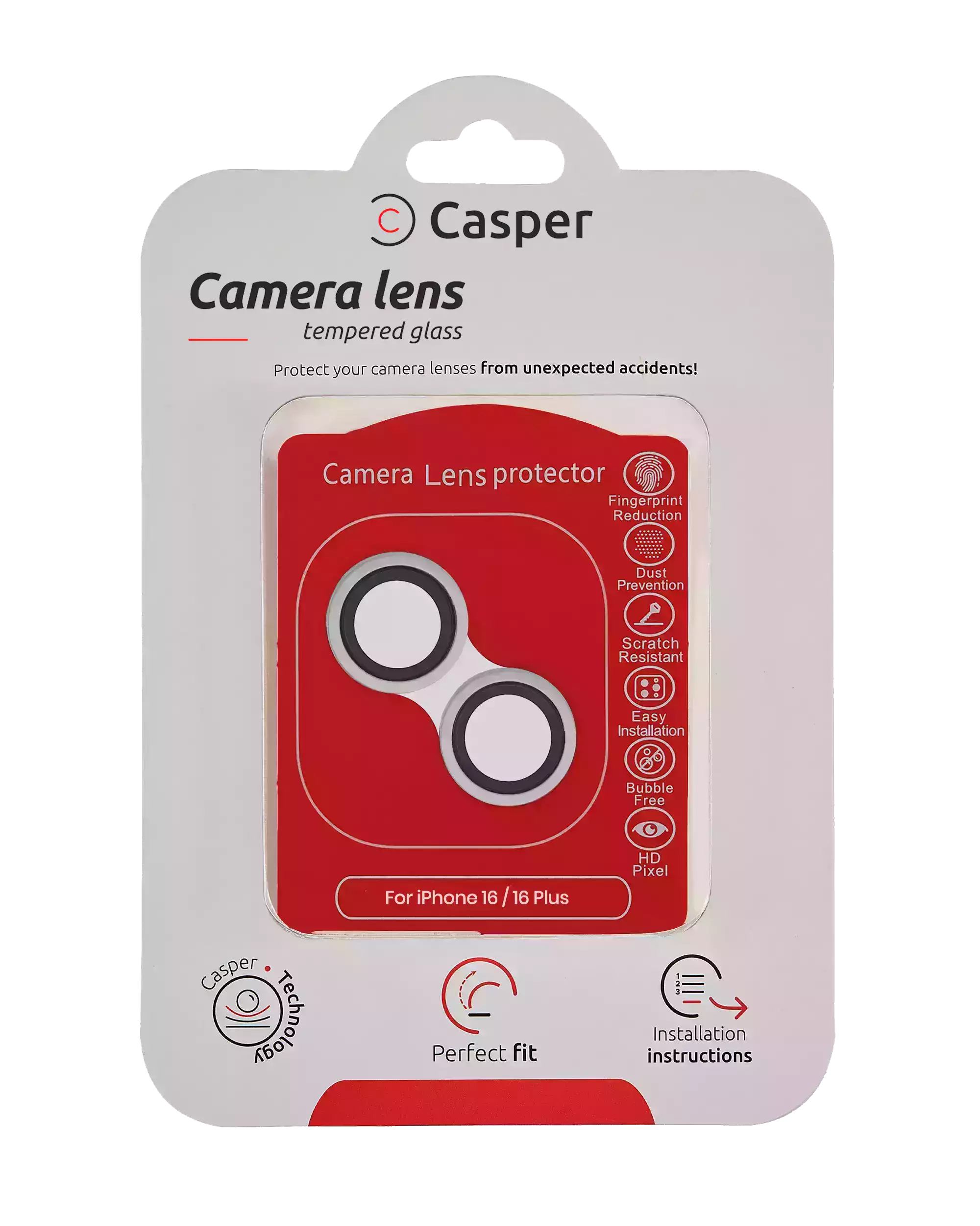 Casper Camera Lens Protector For iPhone 16 / 16 Plus (White) (Clear)