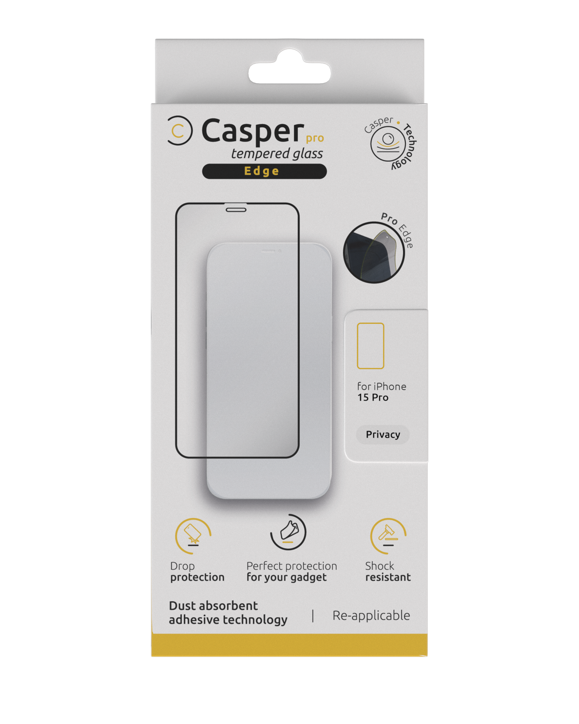 • Strong quality Casper Pro Tempered Glass Screen Protector iPhone 15 Pro (Retail Pack) (Privacy).
