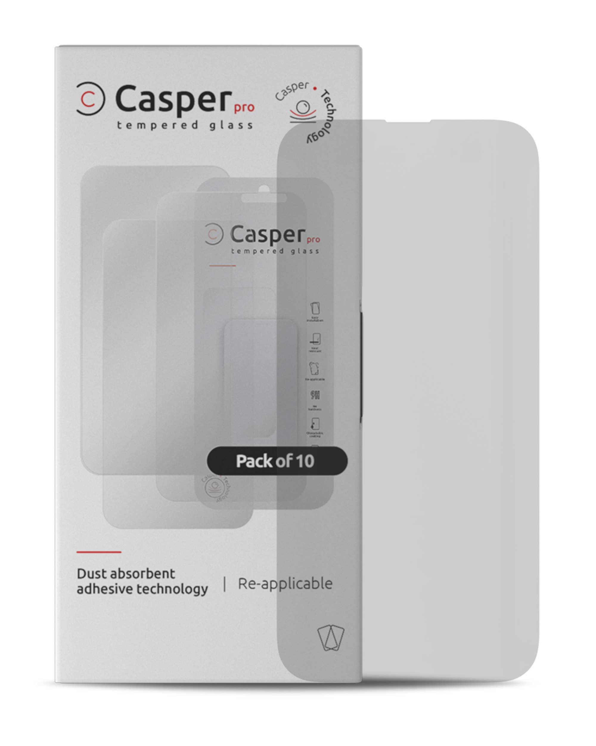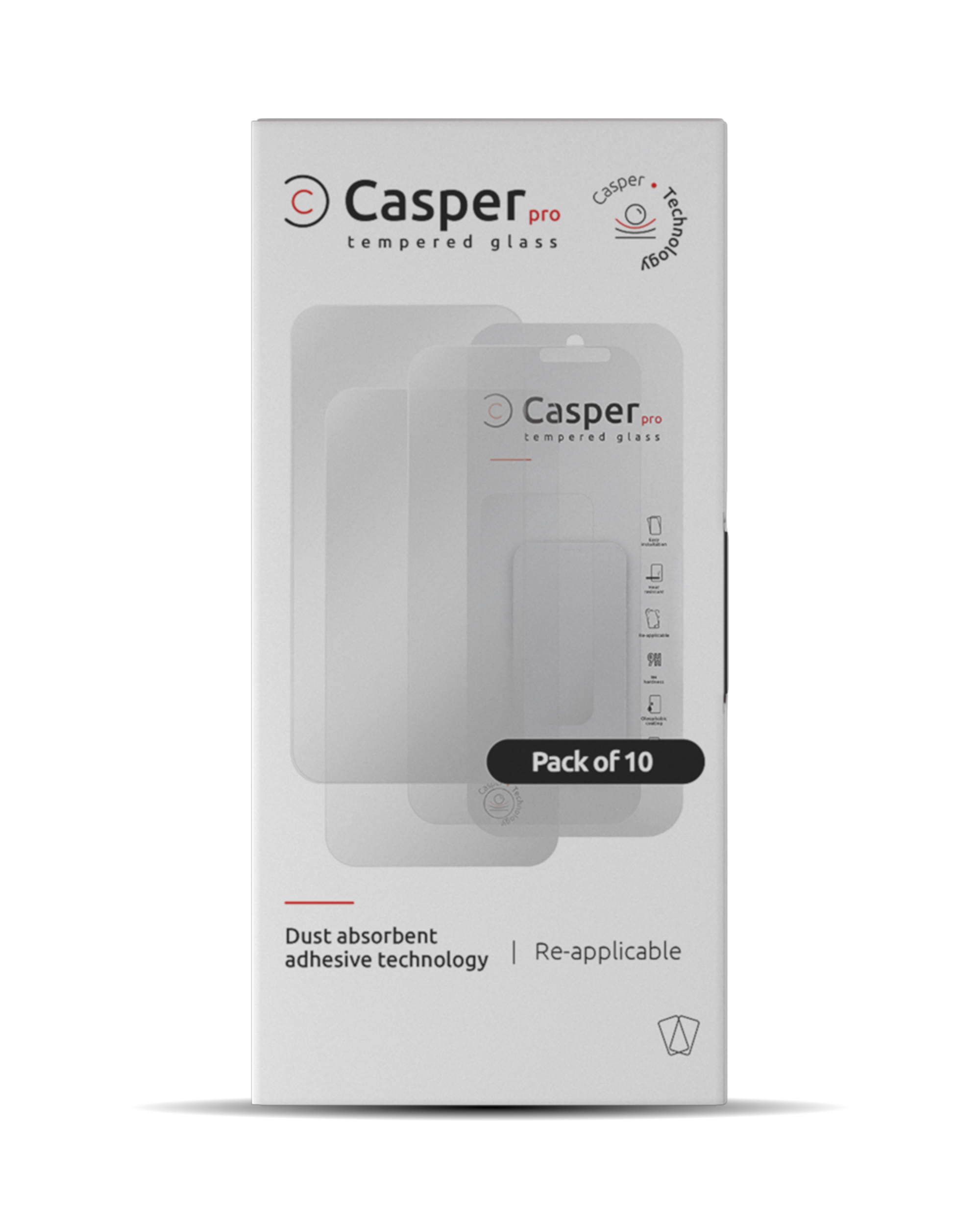 • Each Casper Pro Tempered Glass comes with a set of wipes and dust-removal stickers to ensure a quick, clean and hassle-free installation.