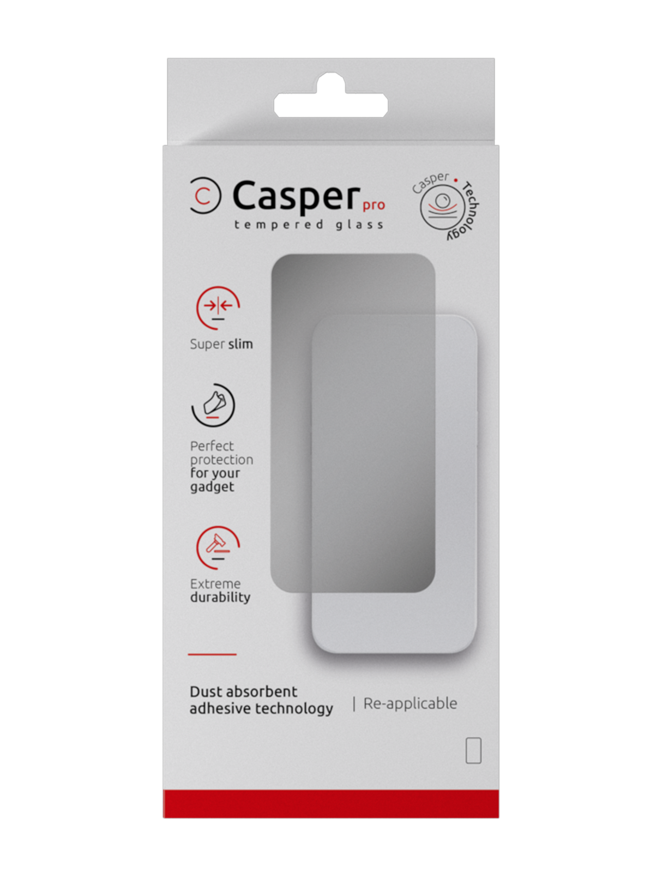 • Each Casper Pro Tempered Glass comes with a set of wipes and dust-removal stickers to ensure a quick, clean and hassle-free installation.