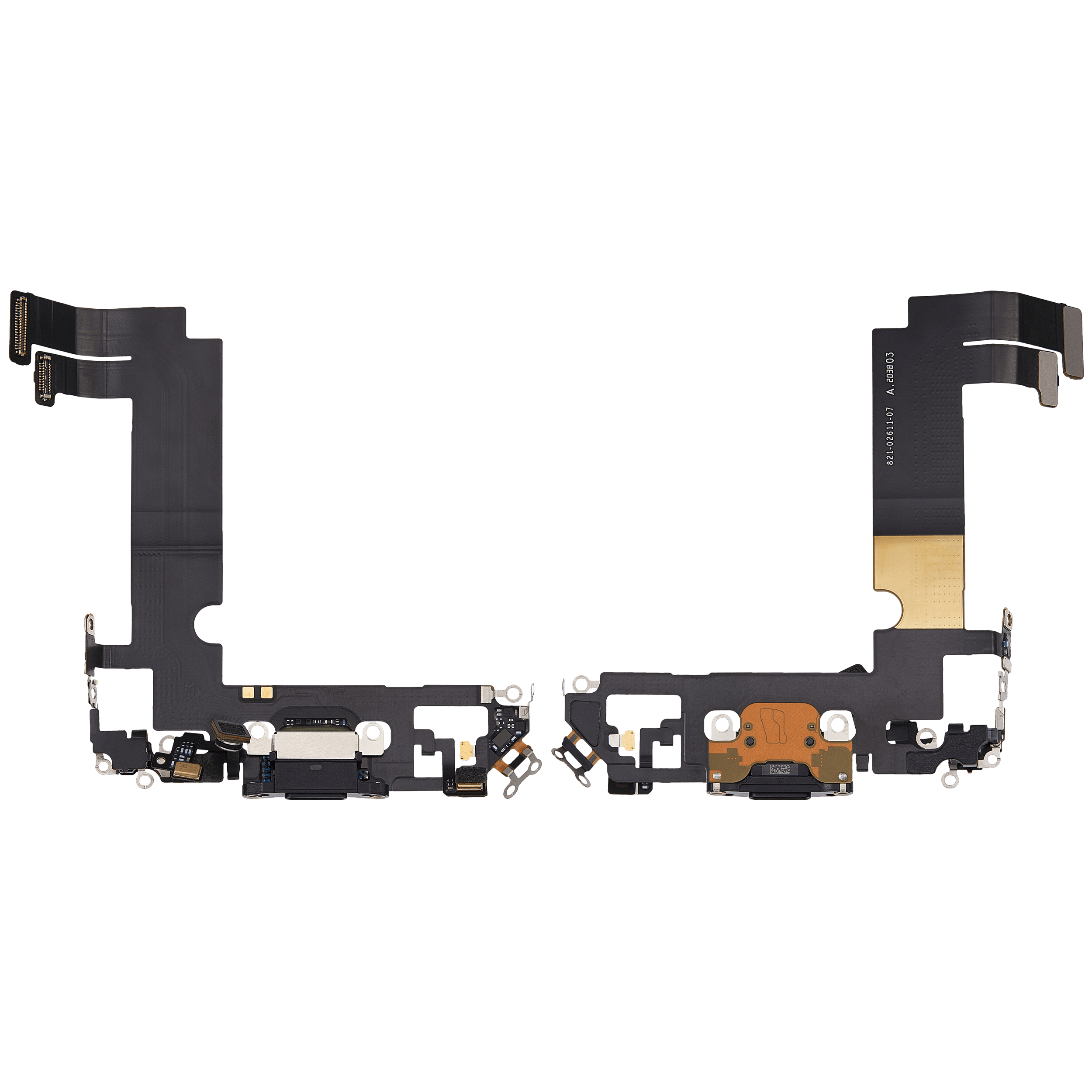 • Replacement charging port flex cable for iPhone 12 Mini (Black), sourced from used OEM pulls