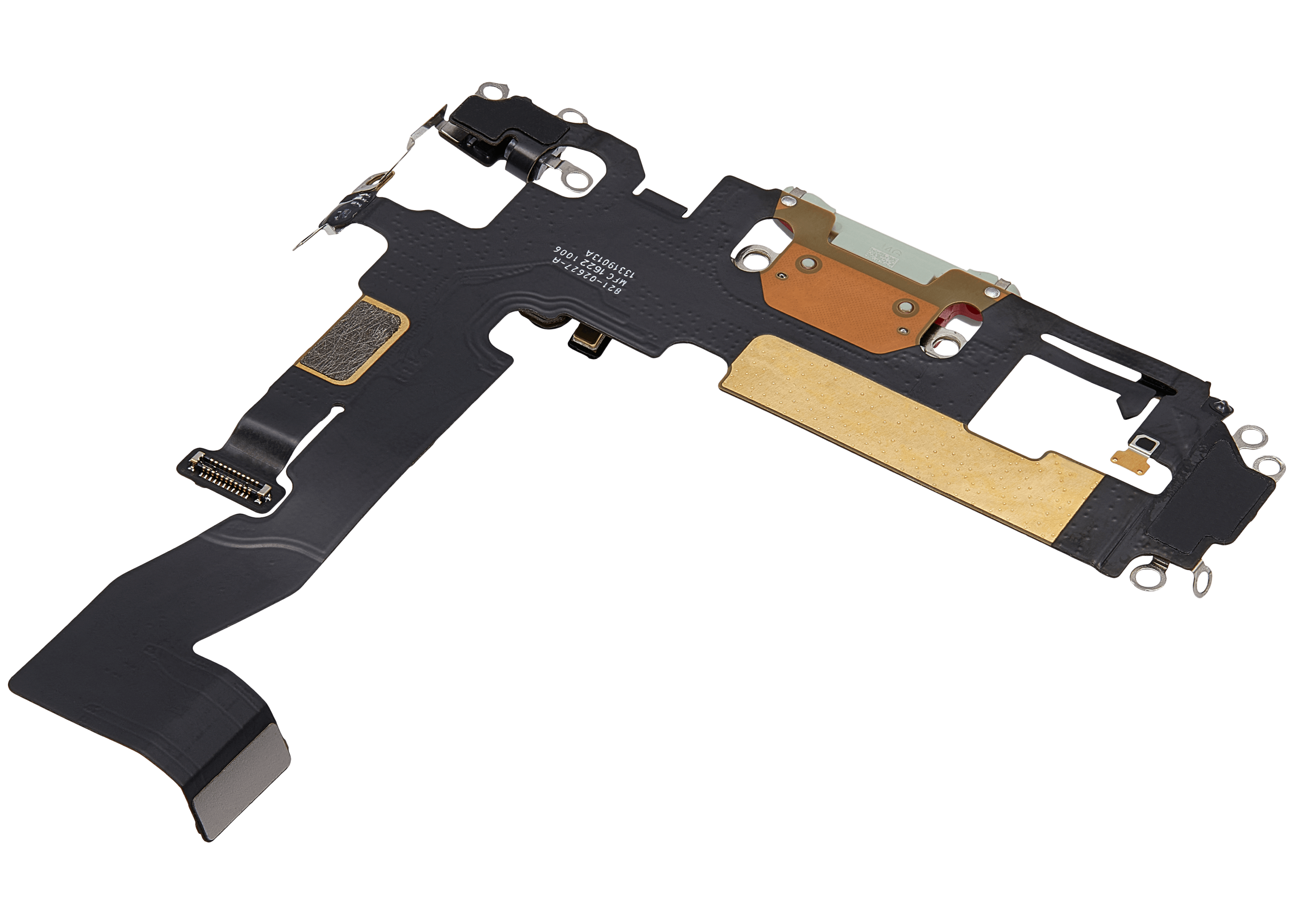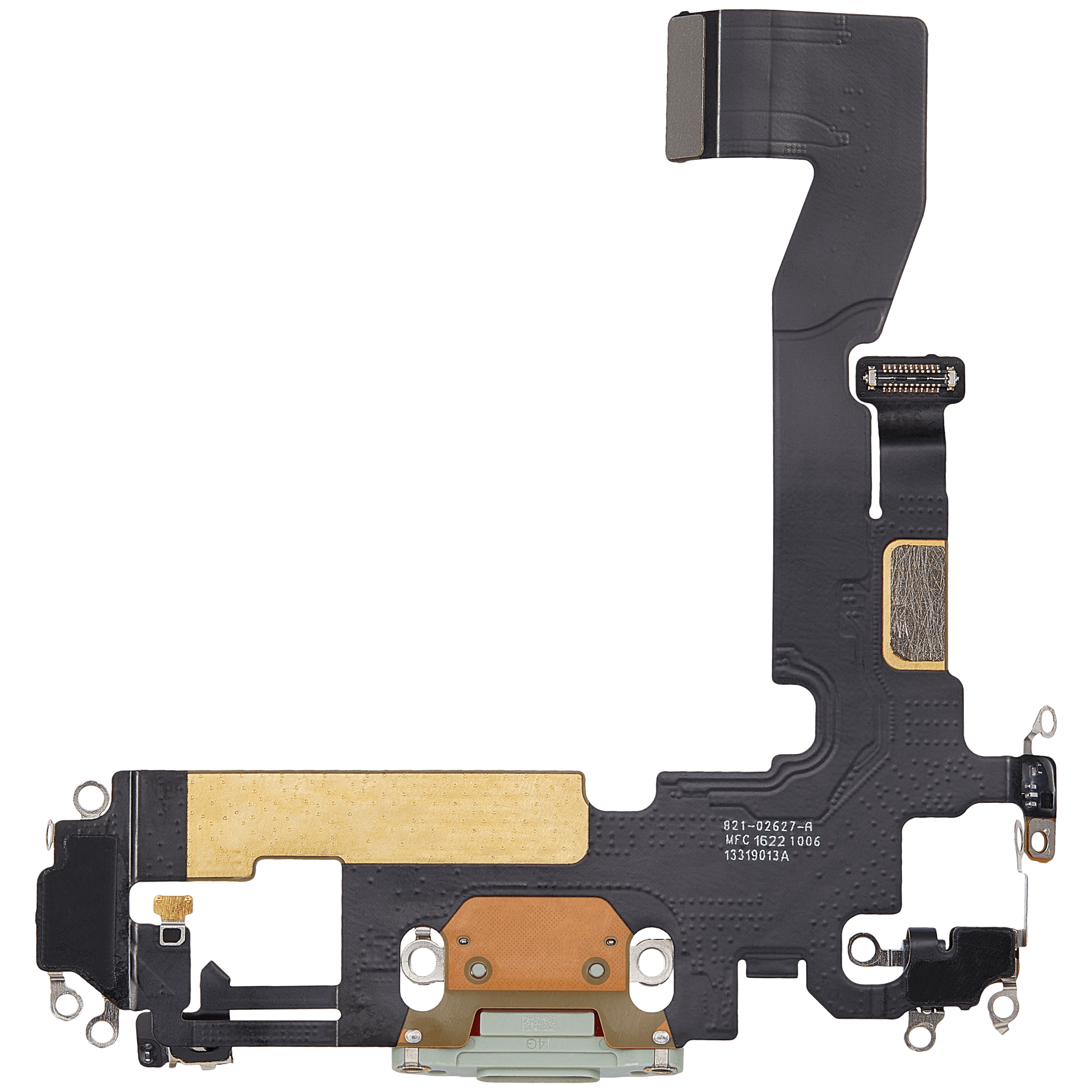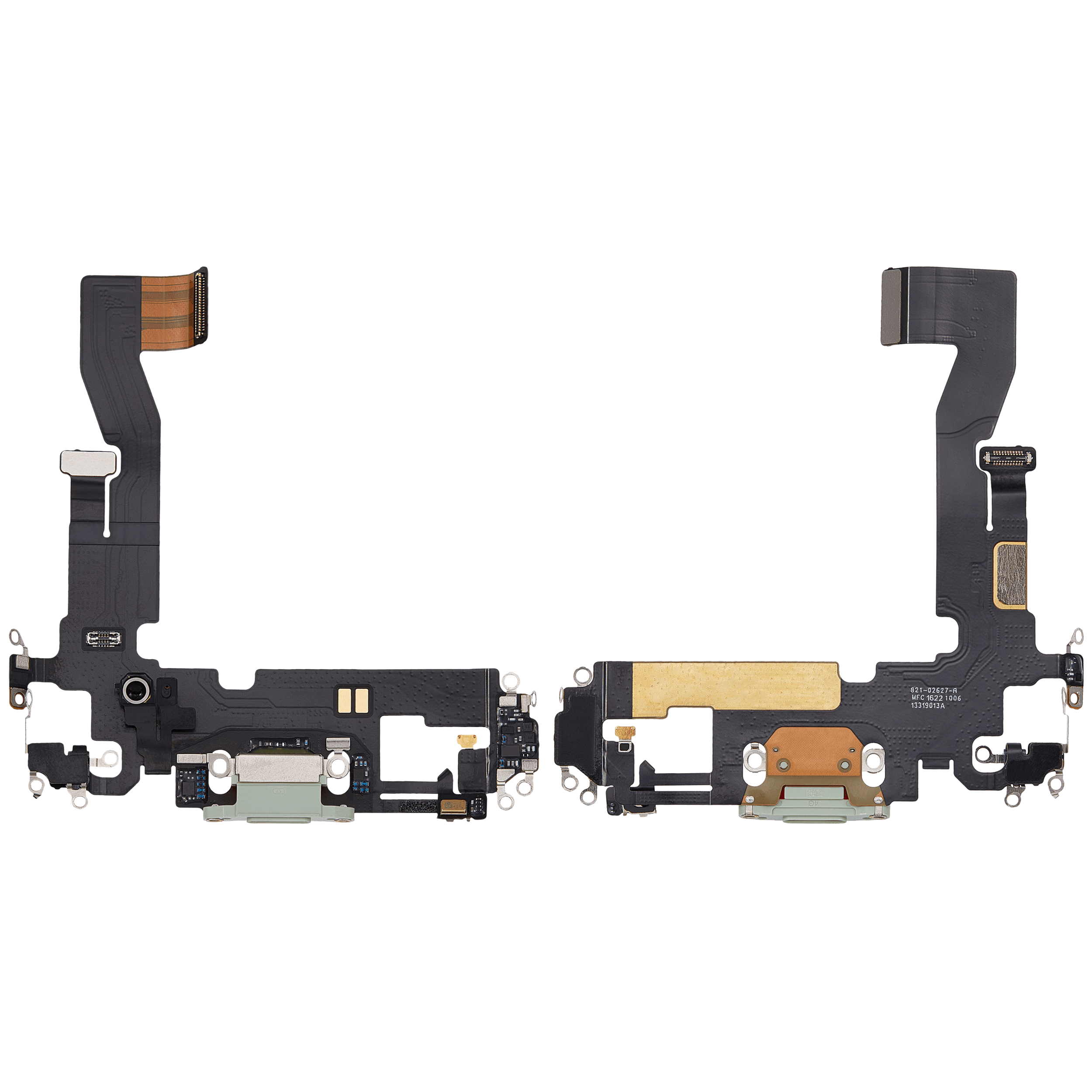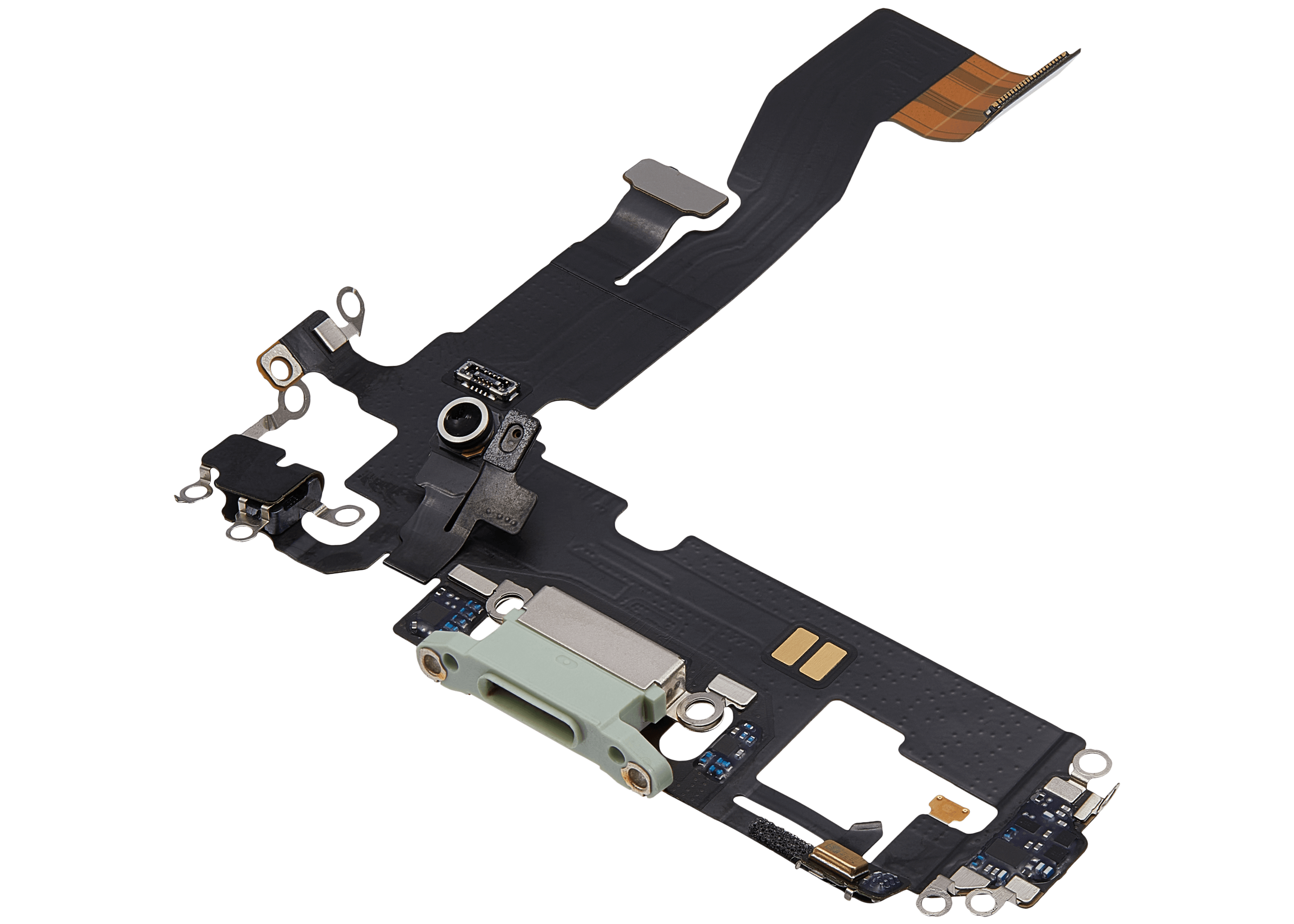 • Replacement charging port flex cable for iPhone 12 / 12 Pro (Green), sourced from used OEM pulls