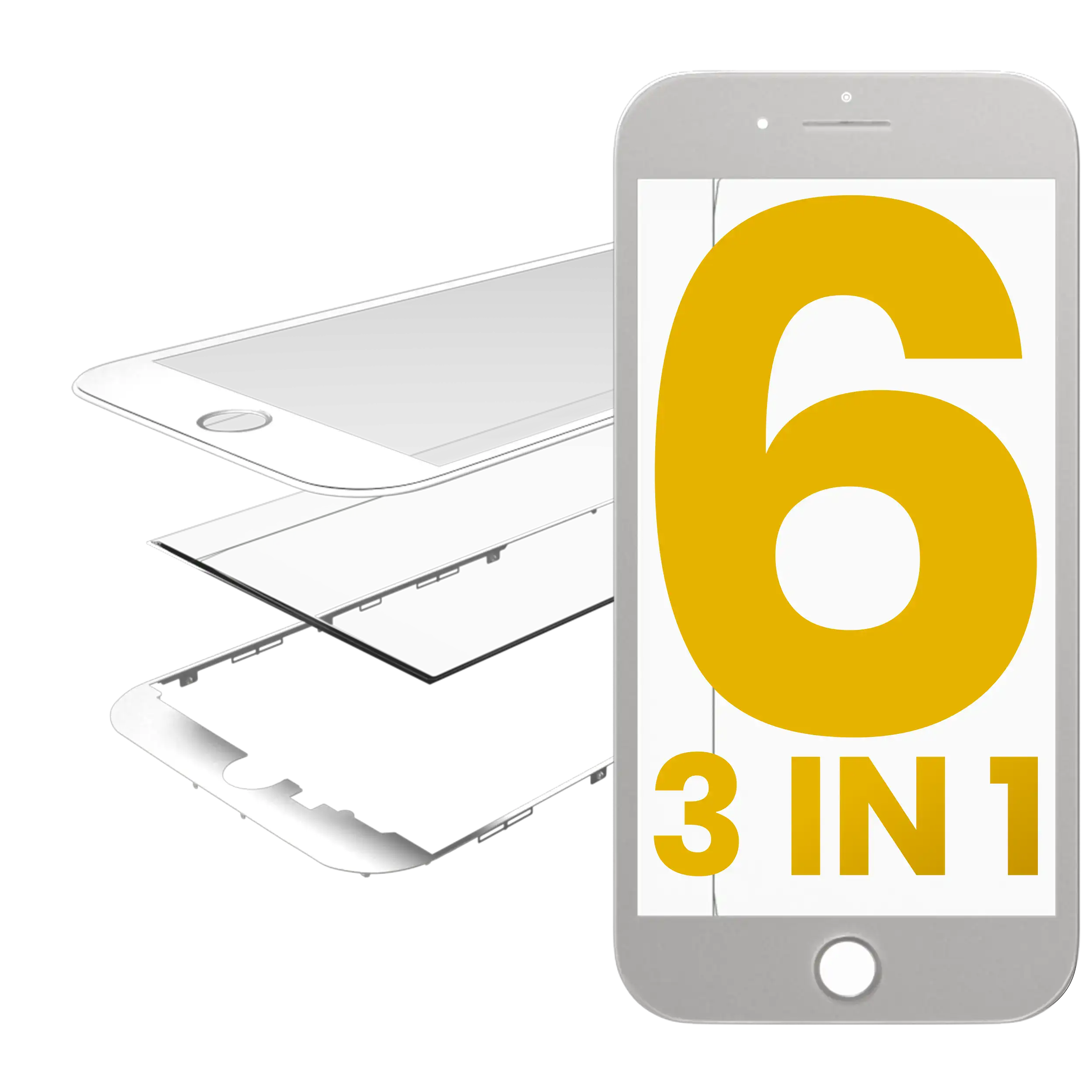 • High quality 3 in 1 Front Glass with Frame and OCA Pre-Installed for iPhone 6 (White) (2 Pack)