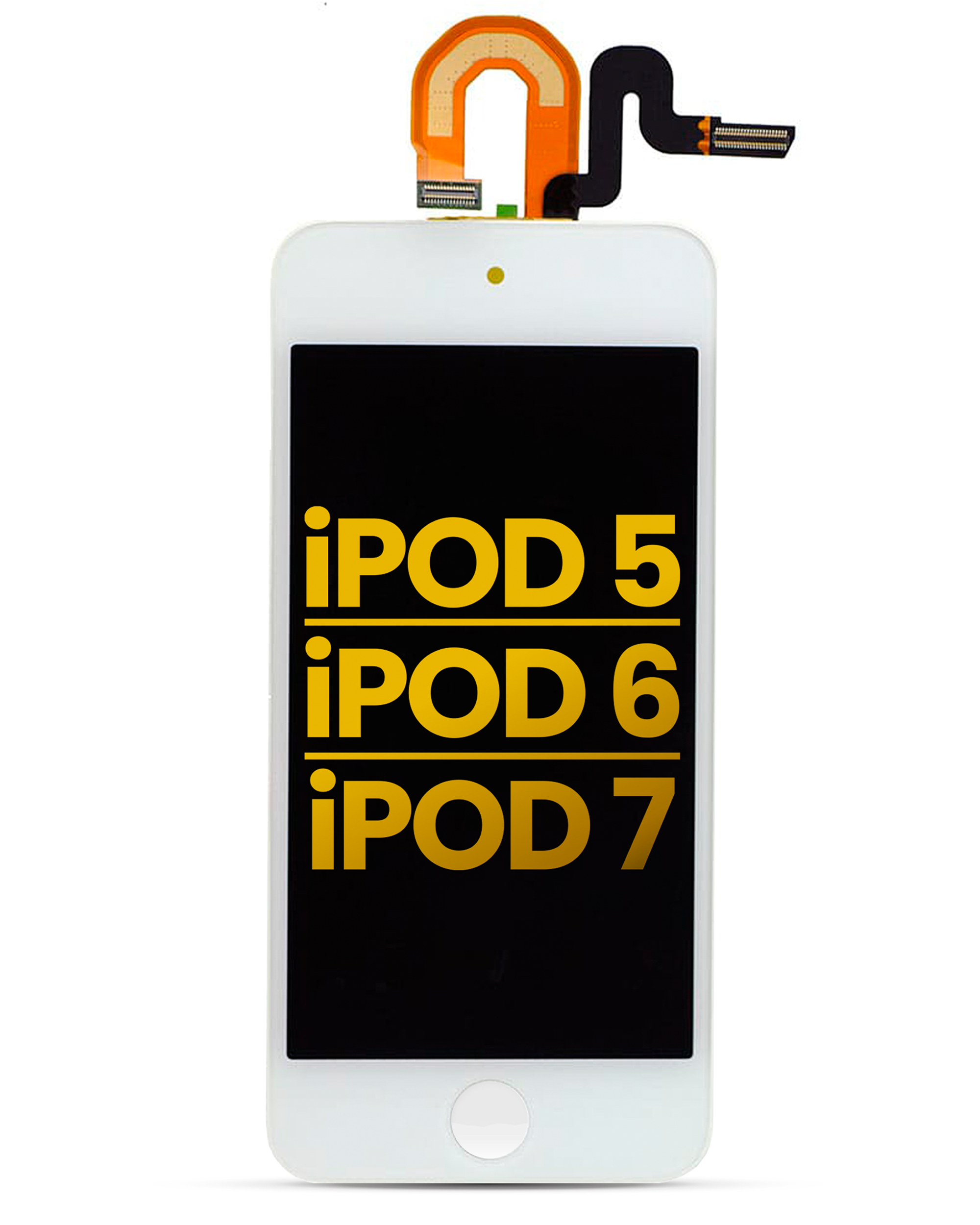 • Apple iPod touch 5 / Touch 6 / Touch 7 LCD + touch screen digitizer(White) includes the LCD and touch screen digitizer.