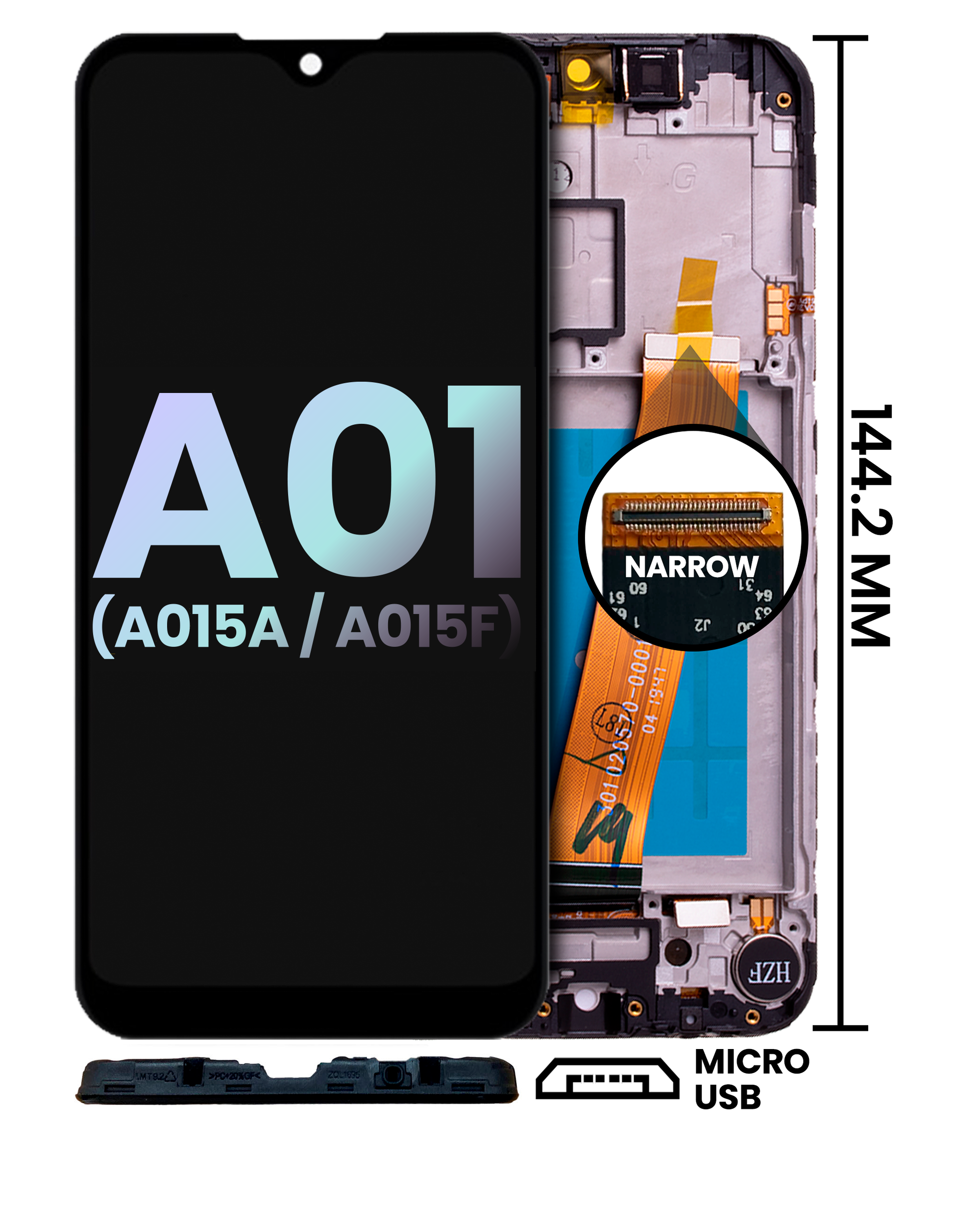 LCD Assembly With Frame For Samsung Galaxy A01 (A015A / A015F) (Micro USB Frame / Narrow FPC Connector) (Service Pack) (All Colors)