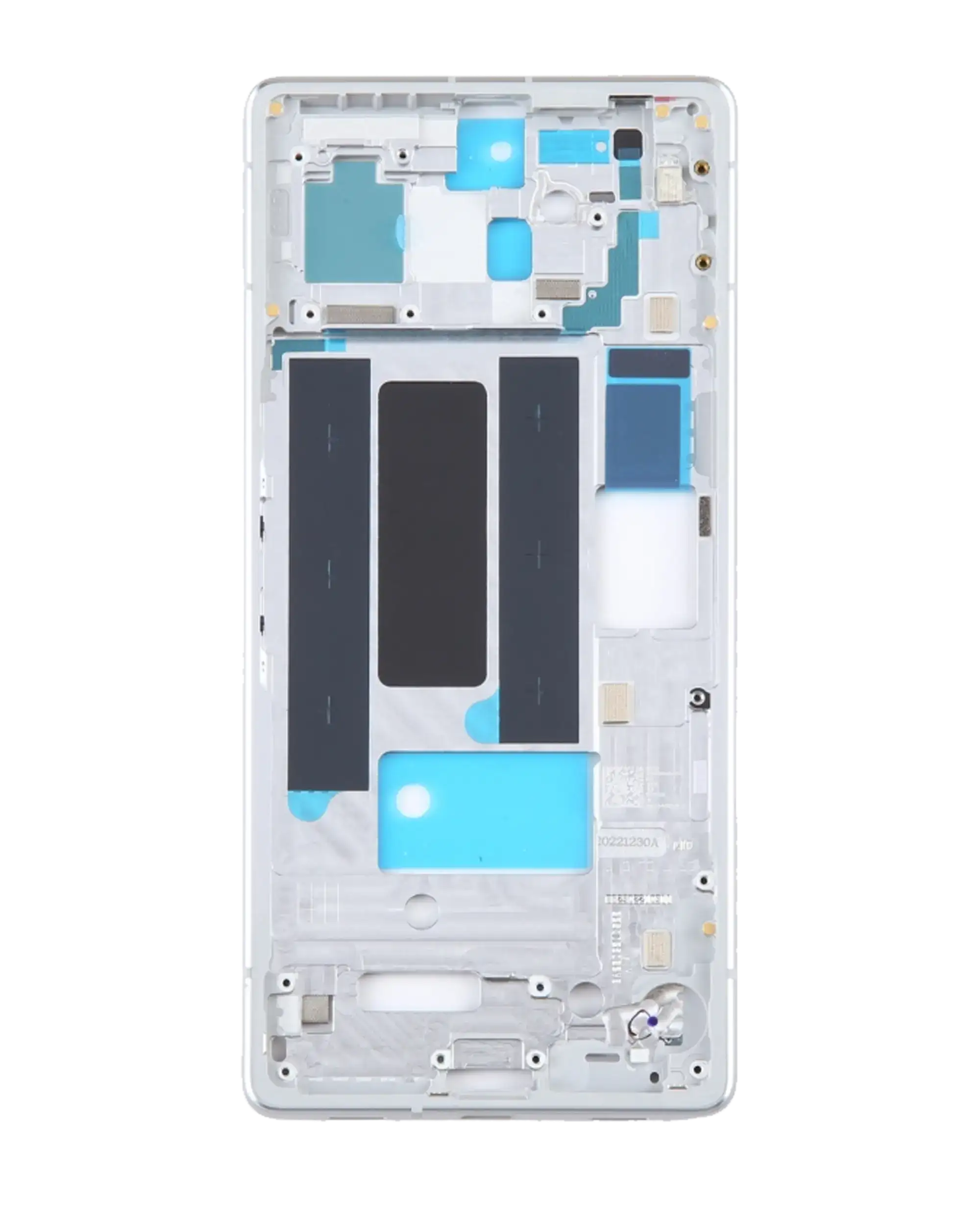 • The Mid-Frame Housing provides structural support for internal components such as the Power and Volume Buttons.
