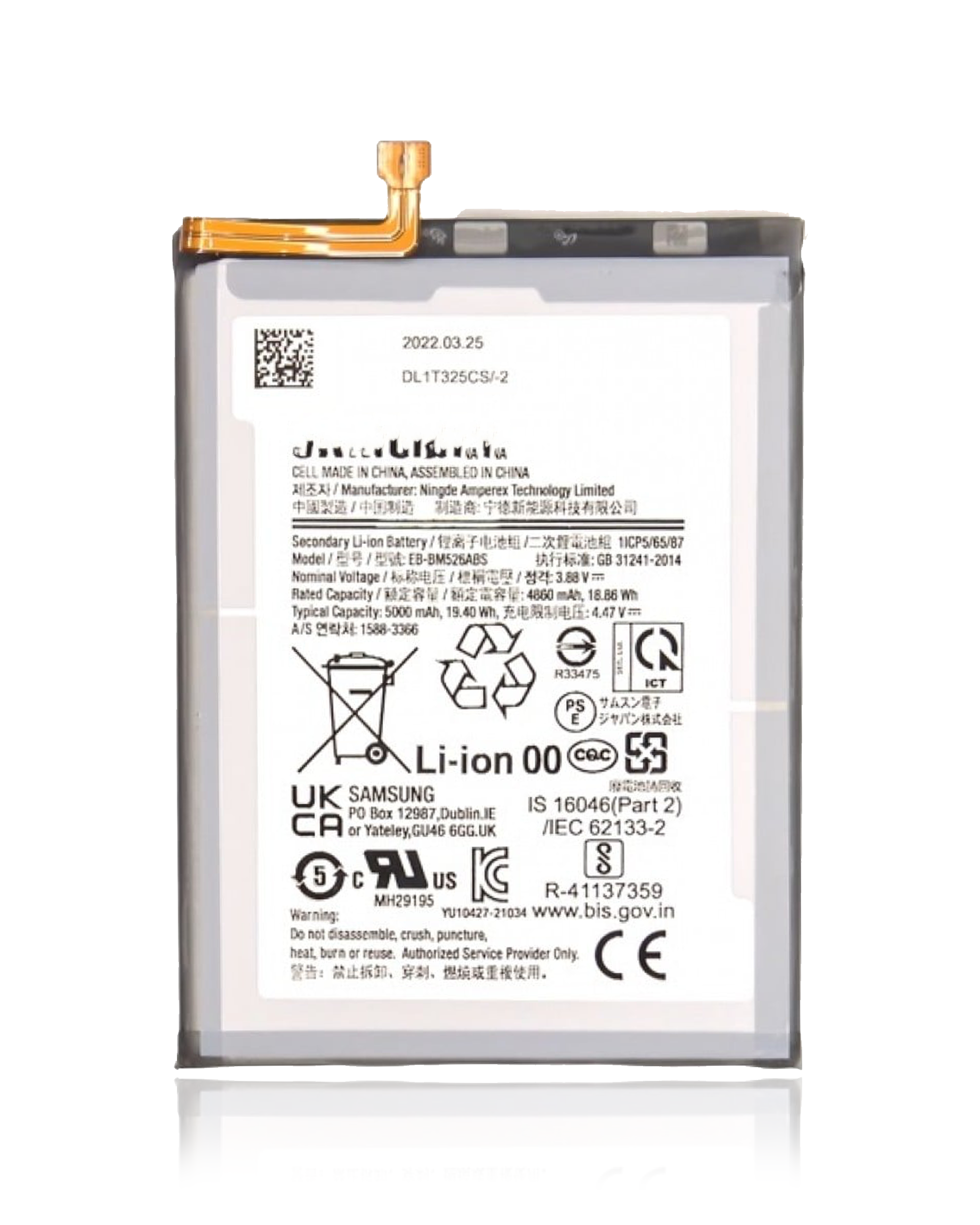 • Replacement Battery Compatible For Samsung Galaxy M52 5G (M526 / 2021) (EB-BM526ABS) (Service Pack)