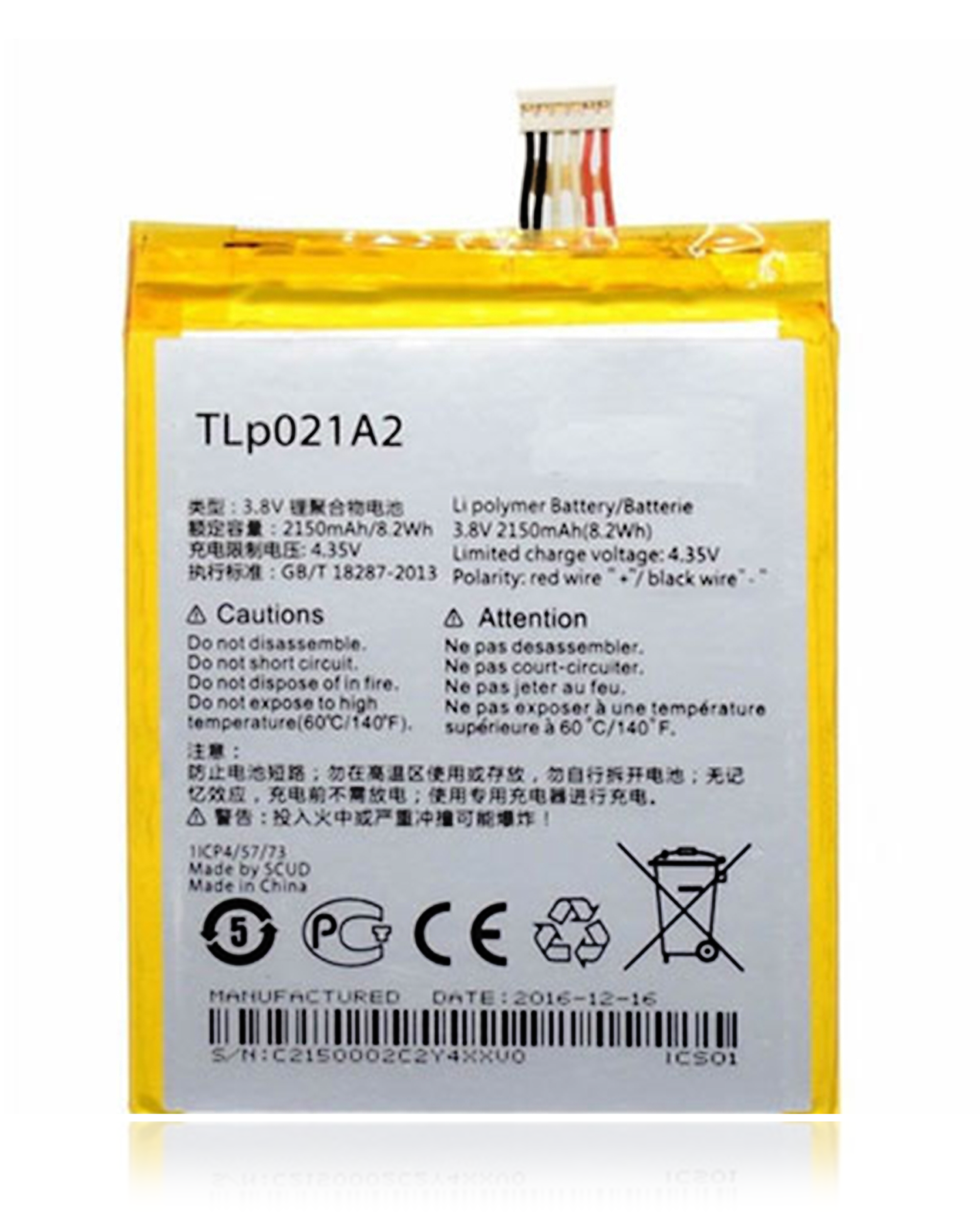 Replacement Battery For Alcatel One Touch Idol 4S / BlackBerry DTEK60 (TLP030F2 / TLP030F1)