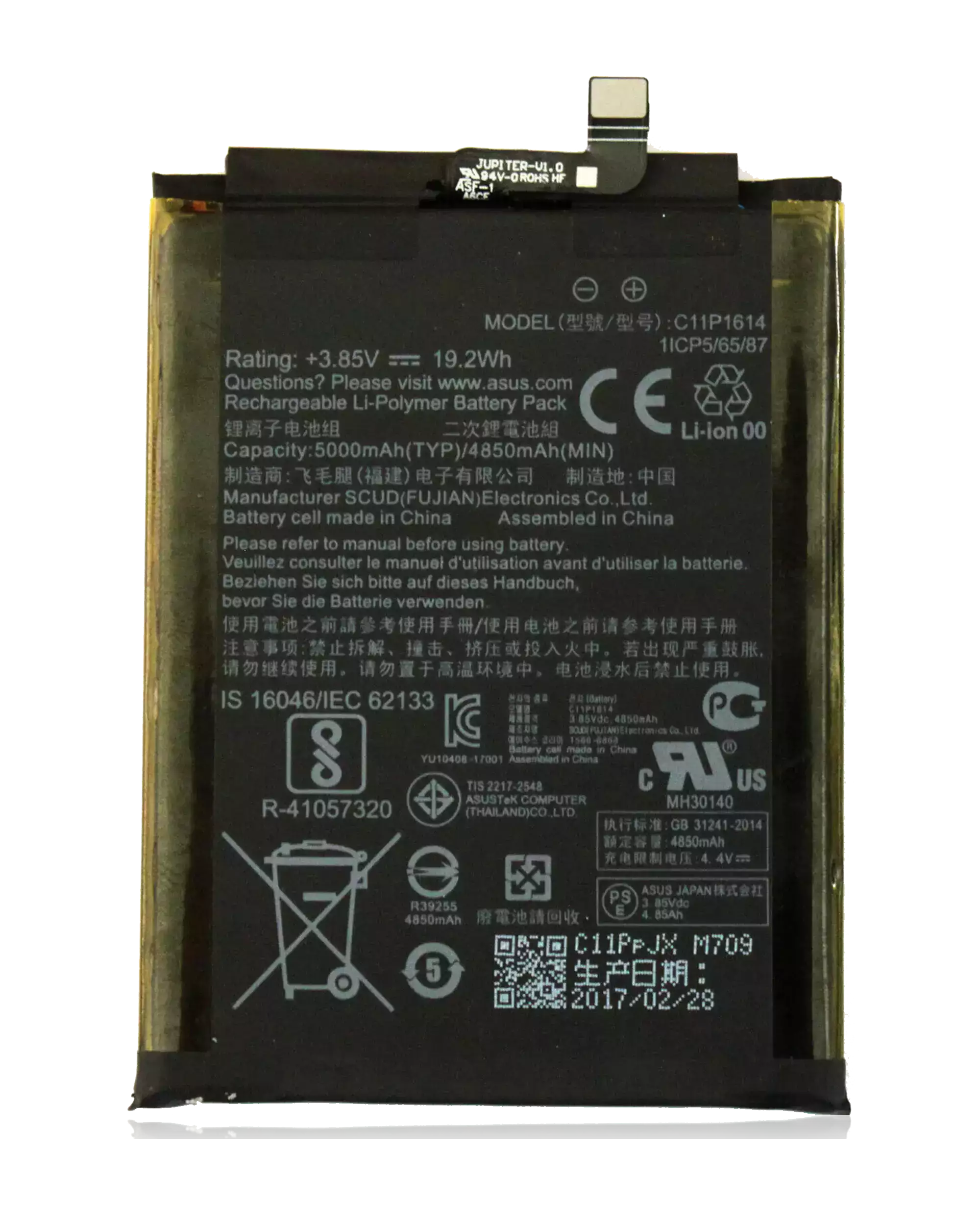 Replacement Battery For Asus ZenFone 3 Zoom (ZE553KL / 2017) / ZenFone 4 Max Pro / ZenFone 4 Max Plus (ZC554KL / 2017) (C11P1612)