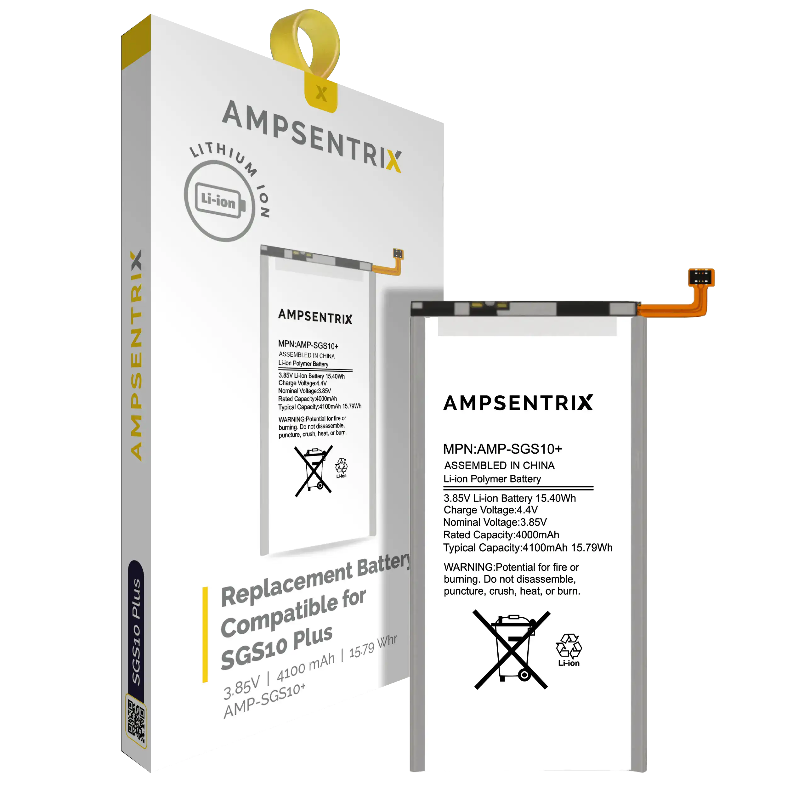 Replacement Battery For Samsung Galaxy S10 Plus (AmpSentrix Pro)
