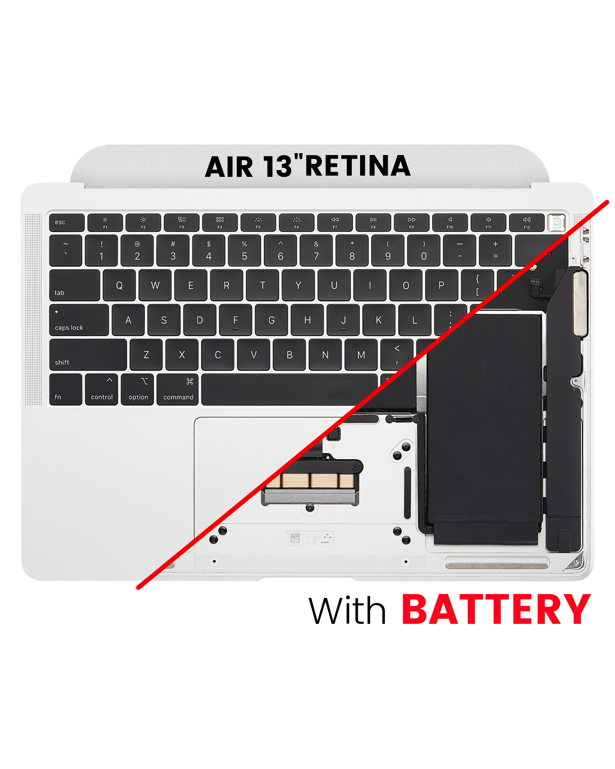 • High quality Top Case Assembly with Battery and Keyboard for MacBook Air 13" Retina (A1932 / Late 2018 / Early 2019 / Mid 2019) (US English) (Used OEM Pull: Grade A) (Silver)