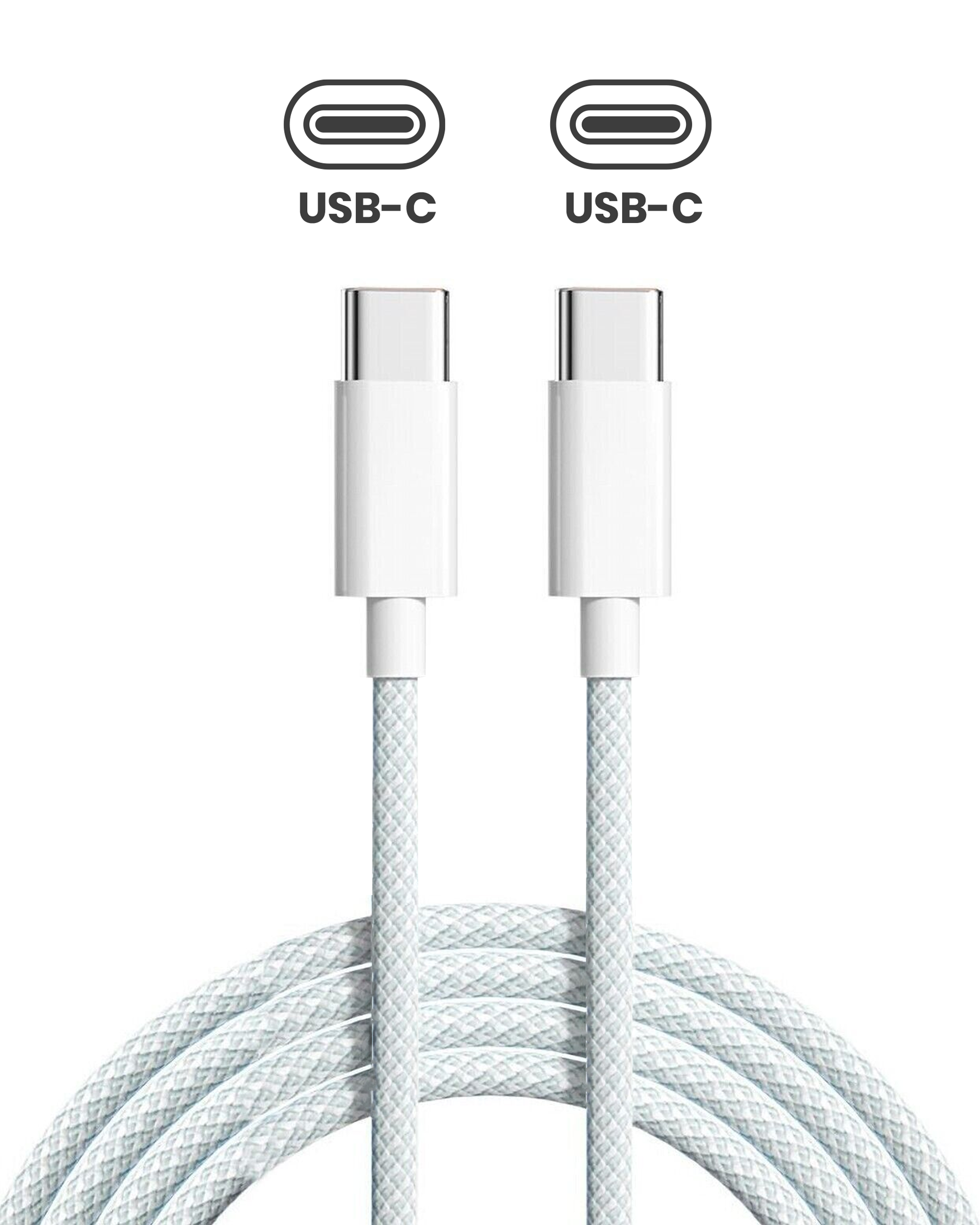 USB-C to C Braided Cable (3ft.) For iPhone / iPad (OEM Grade A) (Bulk Packaging) (50 Pack)